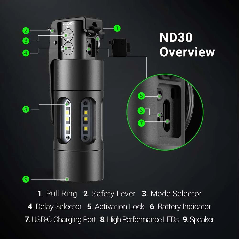 The NEXTORCH ND30 is our most sought-after tactical tool, delivering professional-grade distraction capabilities without the regulatory constraints of traditional flashbangs. This innovative system combines 11,000 lumens of disorienting strobe with 130dB sound output, providing law enforcement professionals a rechargeable alternative that's rapidly becoming the standard for SWAT teams and tactical units worldwide.