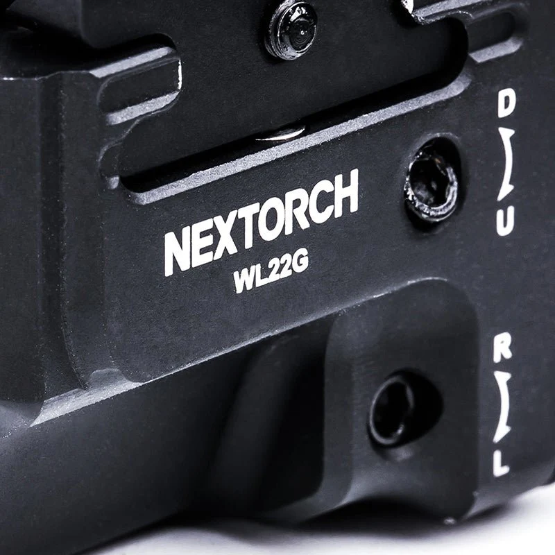 The NEXTORCH WL22 is a dual function compact gun light with a 650 lumen high-intensity white light with a choice of a red or green 5mW laser. Its patented mounting system ensures a quick and secure attachment to Picatinny and Glock rails. The WL22 has twin side switches with memory mode function, is powered by a built-in 250mAh rechargeable lithium-ion battery and features windage and elevation adjustments for precise laser alignment.